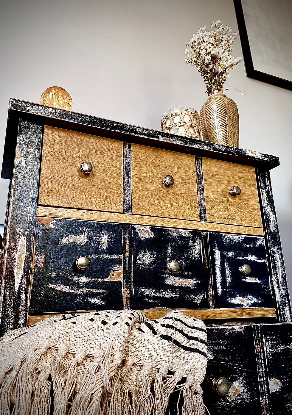 Weathered Effect Black and Oak Drawer Chest